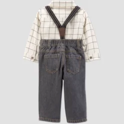 Carter’s Just One You® Baby Boys’ 2pc Striped Long Sleeve T-Shirt And Overalls Set – Gray