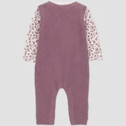 Carter’s Just One You® Baby Girls’ 2pc Floral Long Sleeve Shirt And Sweater Overall Set – Plum