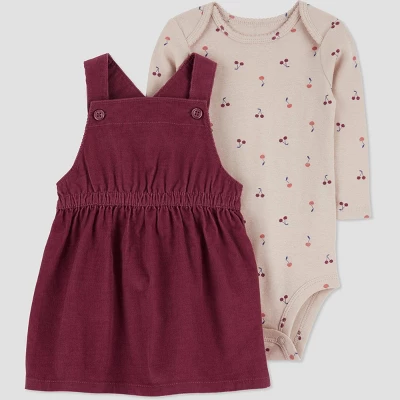 Baby’s signature Fall look has arrived. Here’s an adorable 2-piece skirtall set from Carter’s Just One You that you’ll style again and again for mommy & me outings. This 2-piece outfit for baby girl features a plum corduroy skirt and cherry print long-sleeve top. The overalls also have functional back strap buttons, so dressing baby girl is hassle-free.