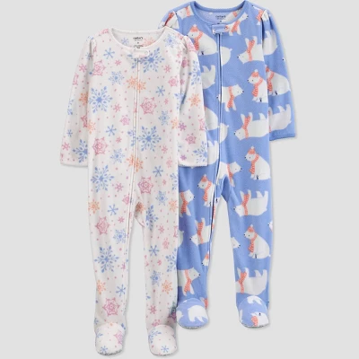 - 2-pack, 1-piece footed fleece pajamas