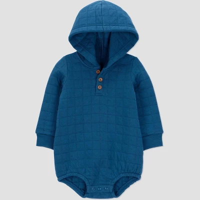 Get baby ready in a snap with this 1-piece hooded romper from Carter’s Just One You. Just add shoes to create an effortless look for your busy little one. This sweet romper for baby boy has a stylish quilted look and convenient snaps at the legs for easy changes! The stylish details on this 1-piece set give this look an elevated look for playdates with your best pals or family outings.