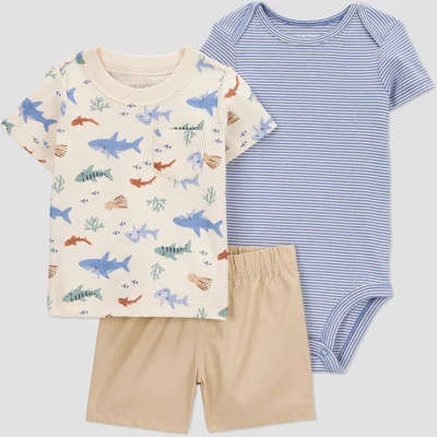 Here’s an instant outfit from Carter’s Just One You that makes getting baby ready a breeze! This 3-piece set for baby boy features a cool sea creature print t-shirt, a blue striped bodysuit and coordinating khaki shor. How cute will you little boy look when you mix and match this cool, comfy style for baby boy. Pssst…this the perfect gift set for a new baby!