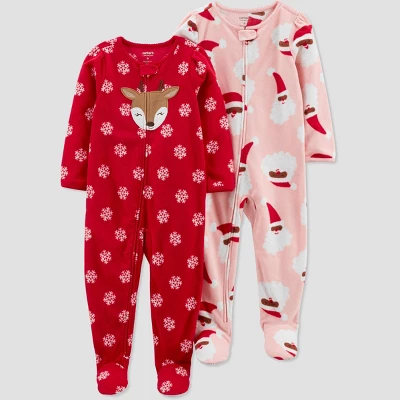 - 2-pack, 1-piece footed fleece holiday pajamas